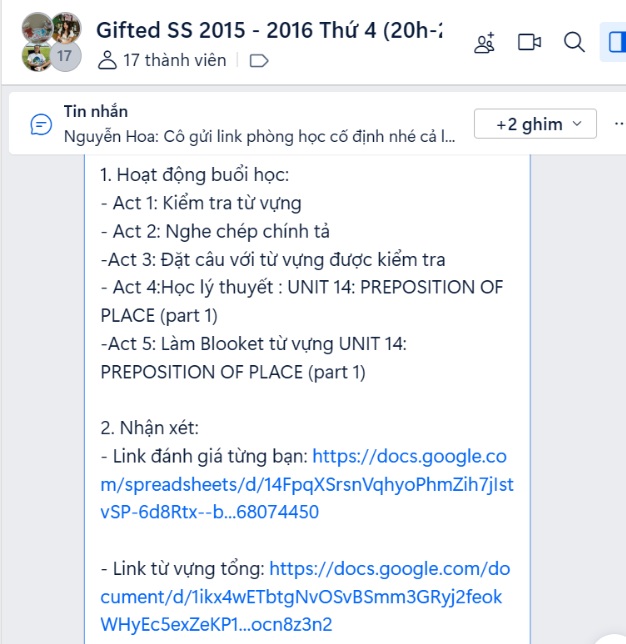 Sau khi học sinh đăng kí học, sẽ được vào nhóm zalo nhận tài tiệu chuẩn bị cho buổi học.